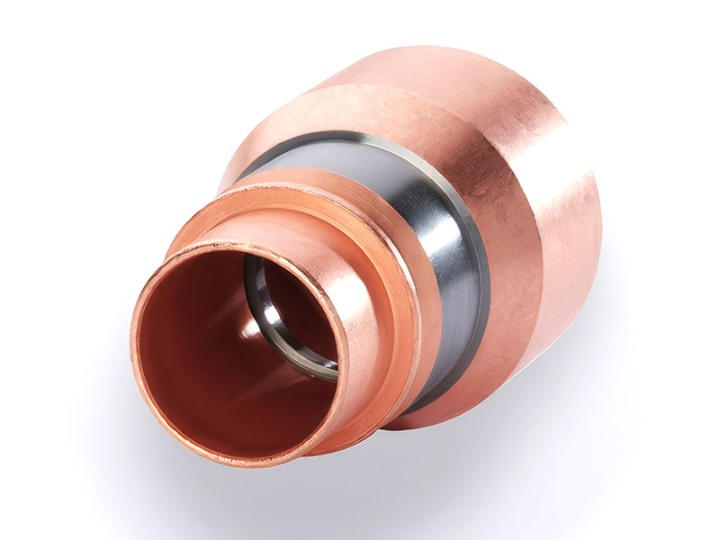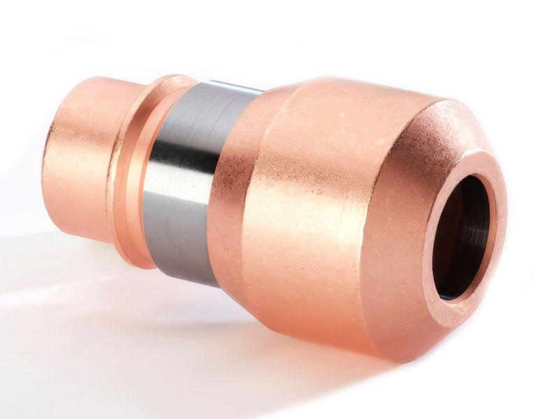 Cette pièce de 50 mm de diamètre est usinée dans un acier C15Pb, matériau adapté aux opérations de décolletage grâce à sa bonne usinabilité. Une opération de cuivrage est ensuite appliquée afin d’améliorer ses propriétés de brasage et de garantir une intégration fiable dans le circuit frigorifique.